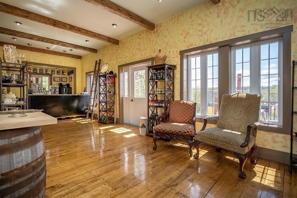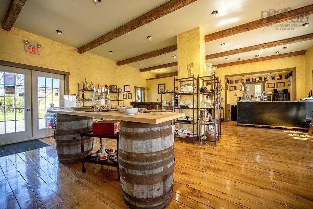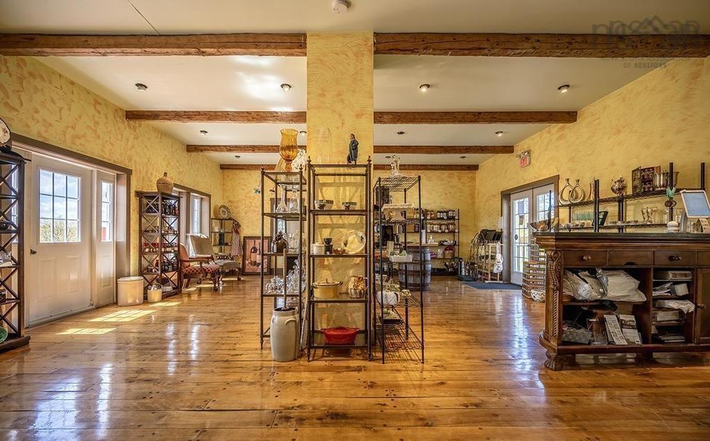 The private driveway leads you across a bridge over the Harris Brook and continues weaving up the hill to the beautifully renovated Century Farmhouse, which is perched on a bench, and has panoramic views of the valley below. The house, is currently being used as an open concept Wine Shop with separate kitchen and 2 piece bathroom and is 1062.09 sq. ft.