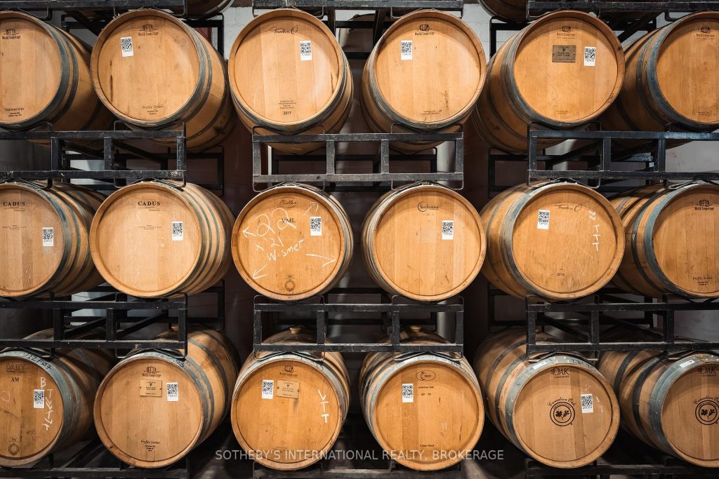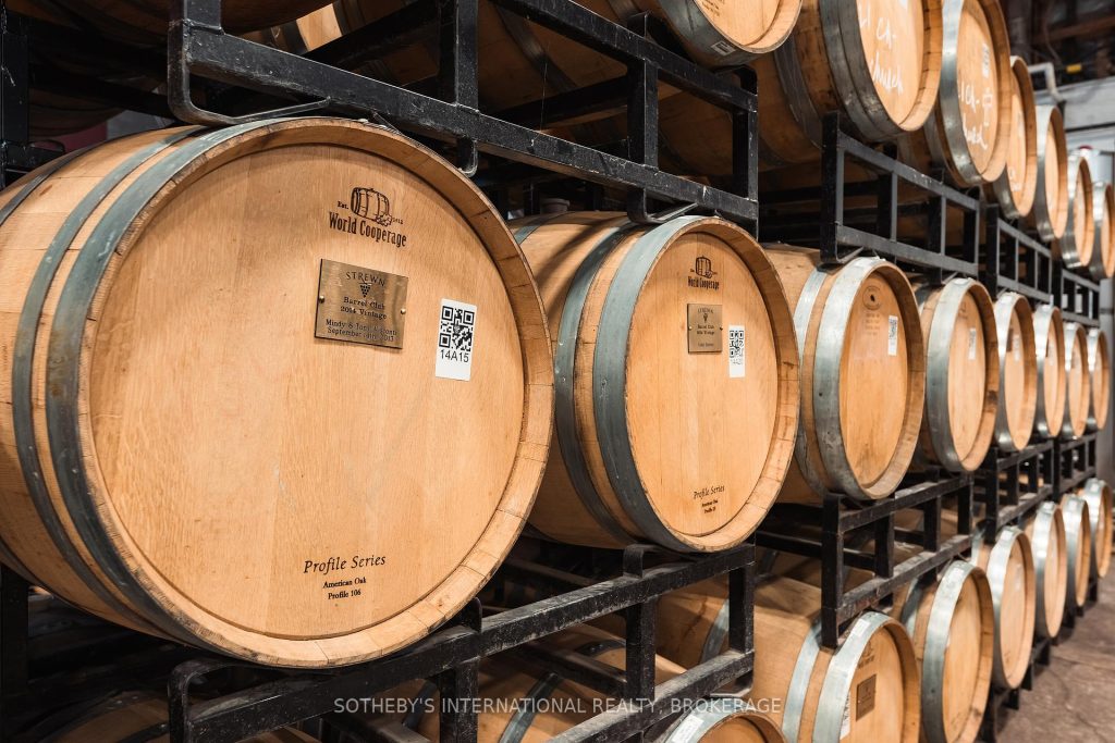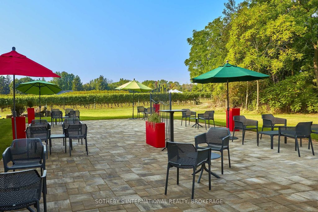 Located minutes from historic Niagara-on-the-Lake, this picturesque piece of land exudes tranquility. Home to Strewn Winery, the Ten Acre property located at 1339 Lakeshore Road has tremendous value as a revenue generator. The property includes a range of guest experiences as it houses the iconic winery, four distinct tasting experience locations (including the outdoor patio with views of the vineyards and scenic Four-Mile Creek tasting room), retail space, a restaurant, a cooking school, production facility and an attached four bedroom with four bathroom (ensuite) home with private courtyard which provides great potential as an Airbnb. In addition, a separate building currently used for onsite space could be utilized as a distillery or brewery. For over two decades, Strewn Winery has produced premium wines. The Company owns and operates a 30,000-square foot winery with complete production and winemaking facilities. Along with its additional 22 acres of vineyard at 916 Line 1, its total of 27 acres under vine yield exceptional red and white wines. Strewn’s wines have won hundreds of awards in international competitions, generating strong brand awareness and loyalty. 1339 Lakeshore Road is one of the area’s three major wine routes and is within minutes of Historic Niagara on the Lake, a major tourism destination as well as restaurants and accommodations. There are very few available parcels of land with such a desirable, high-profile location and all existing vineyards. With a soothing landscape, it’s difficult not to be lulled away by the beauty of time experienced here. It is an ideal opportunity for innovative and inspirational growth. Leases are in place for the cooking school and restaurant, which ultimately allows for multiple revenue streams. The restaurant patio, covered by a permanent roof, overlooks the serene waters of Four Mile Creek.