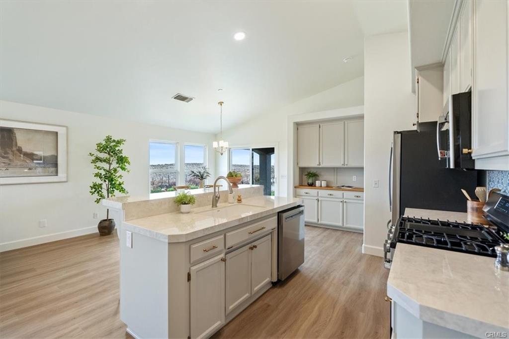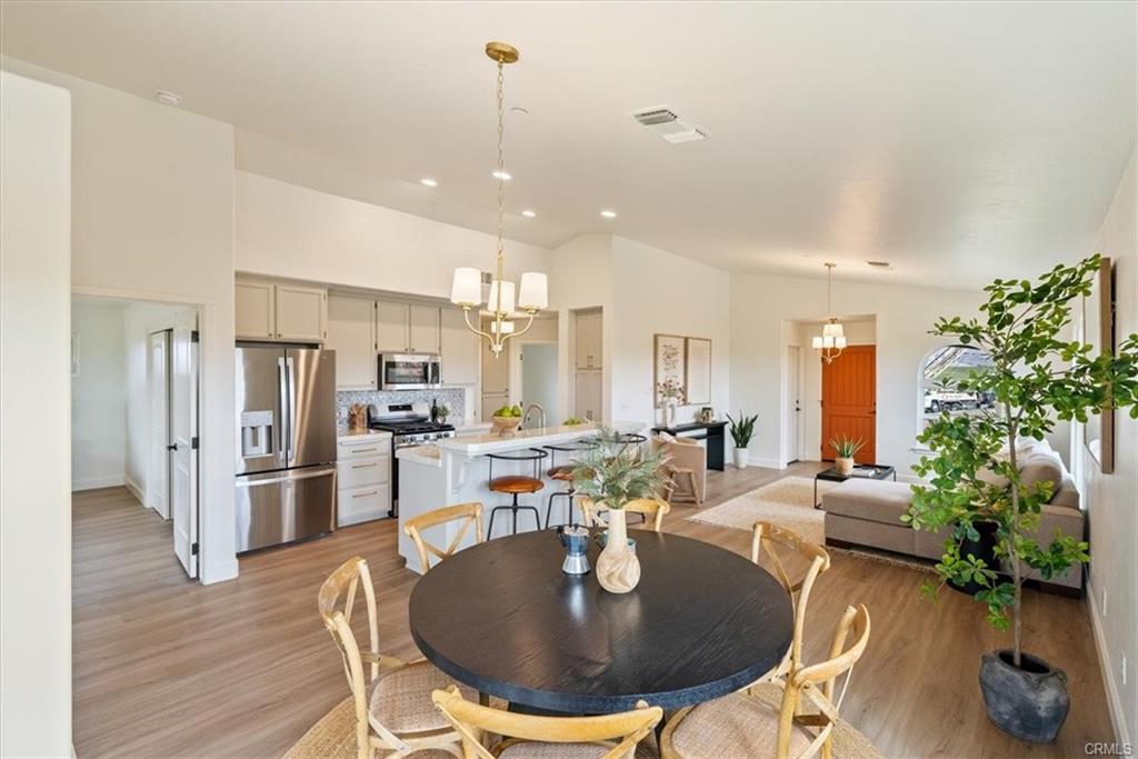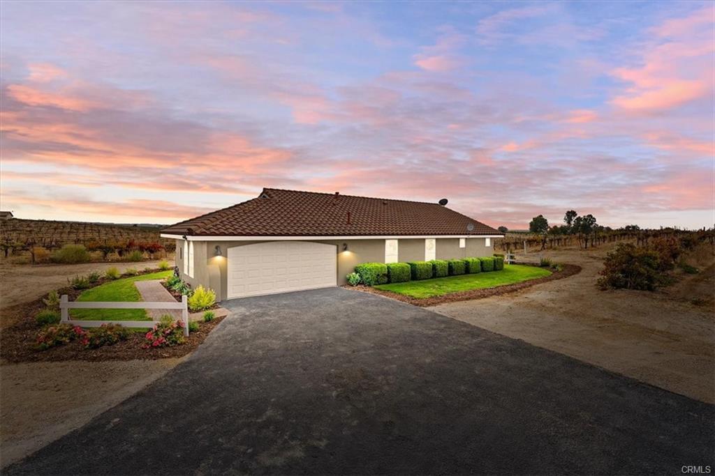 Experience the best of wine country living with this beautifully renovated 1,180± sq.ft. home on 10± acres in San Miguel, highlighted by 9± acres of vineyard and a new private well. Thoughtfully updated with modern finishes, the home showcases new flooring, interior paint, and appliances, creating a stylish and move-in-ready retreat. The open-concept layout connects the living room, dining area, and kitchen with ease, featuring bar seating ideal for casual dining or entertaining. Vaulted ceilings and large picture windows capture the surrounding vineyard landscape, filling the home with natural light and expansive views. The property also includes approved plans and an active permit for an ADU, offering flexibility for future guest accommodations, rental potential, or extended family living. A perfect blend of comfort, functionality, and vineyard charm—this San Miguel estate embodies the essence of relaxed Central Coast living.