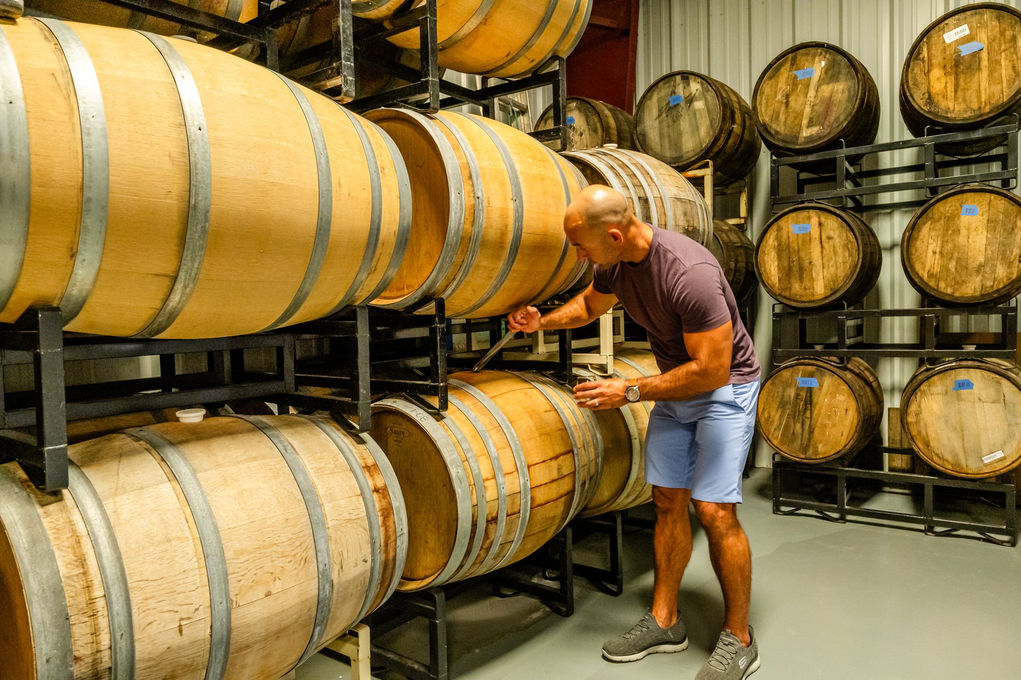 • 5,000 sf dedicated case storage with 20’ ceiling allowing double stacking of tall empty wine bottle pallets. Also has commercial grade racking system