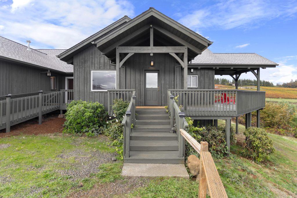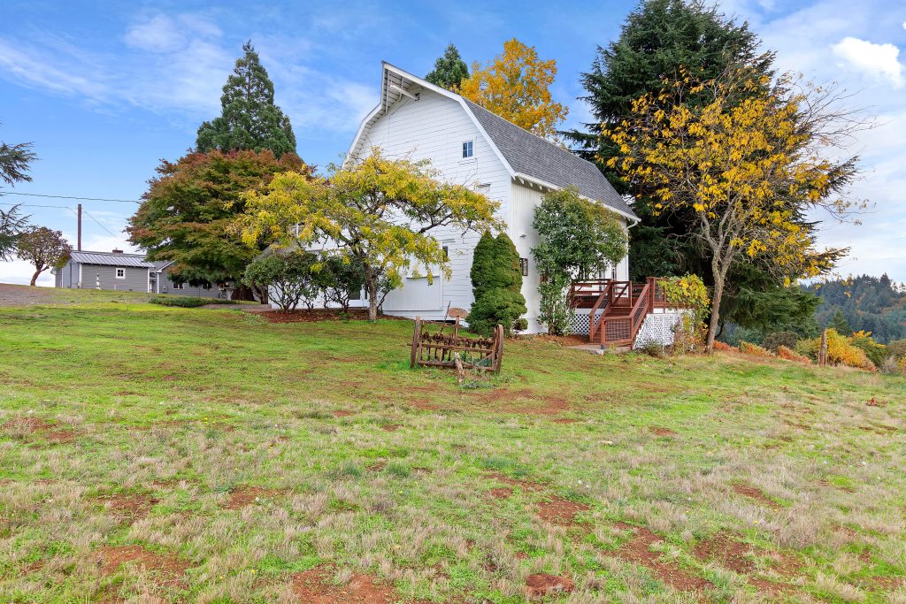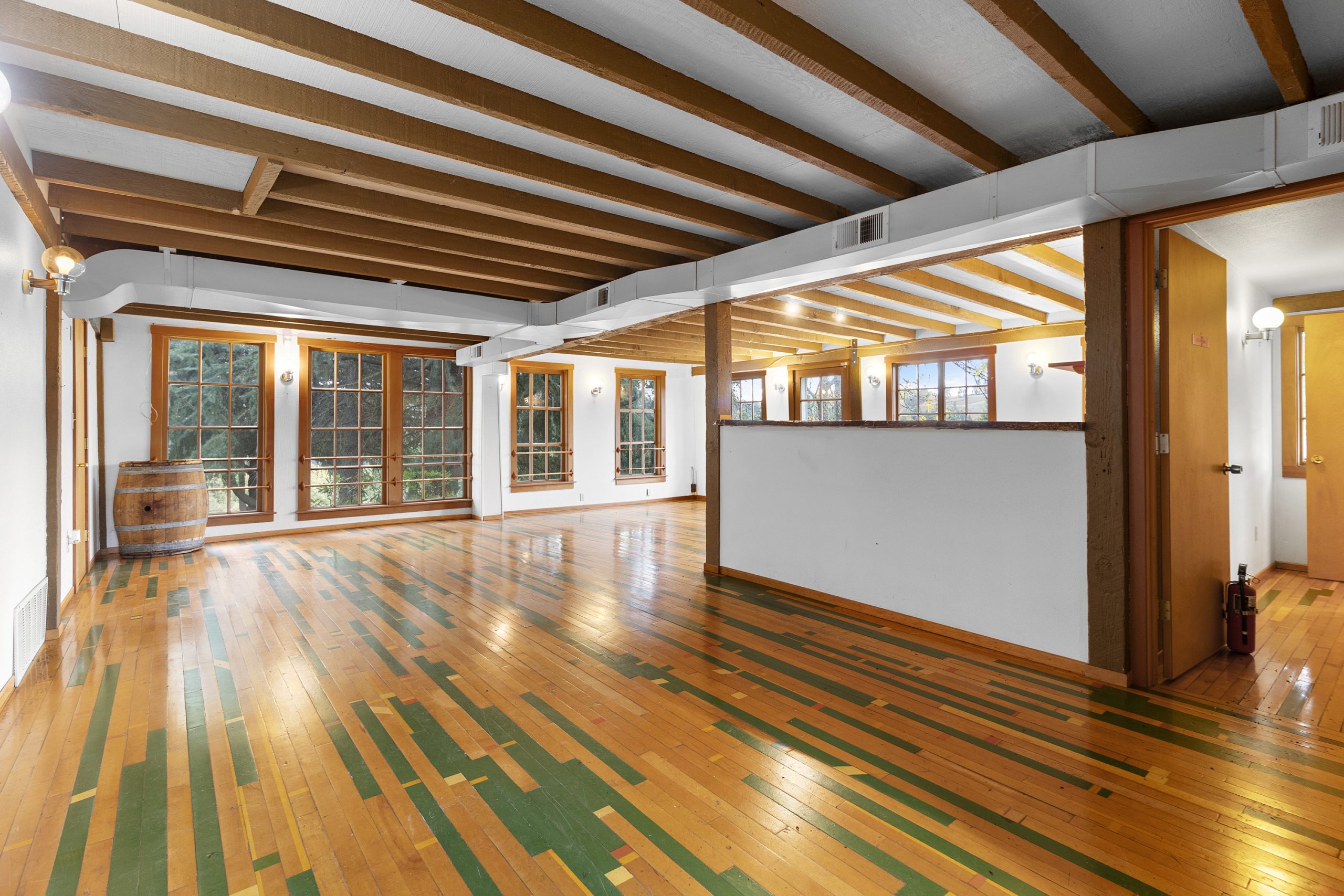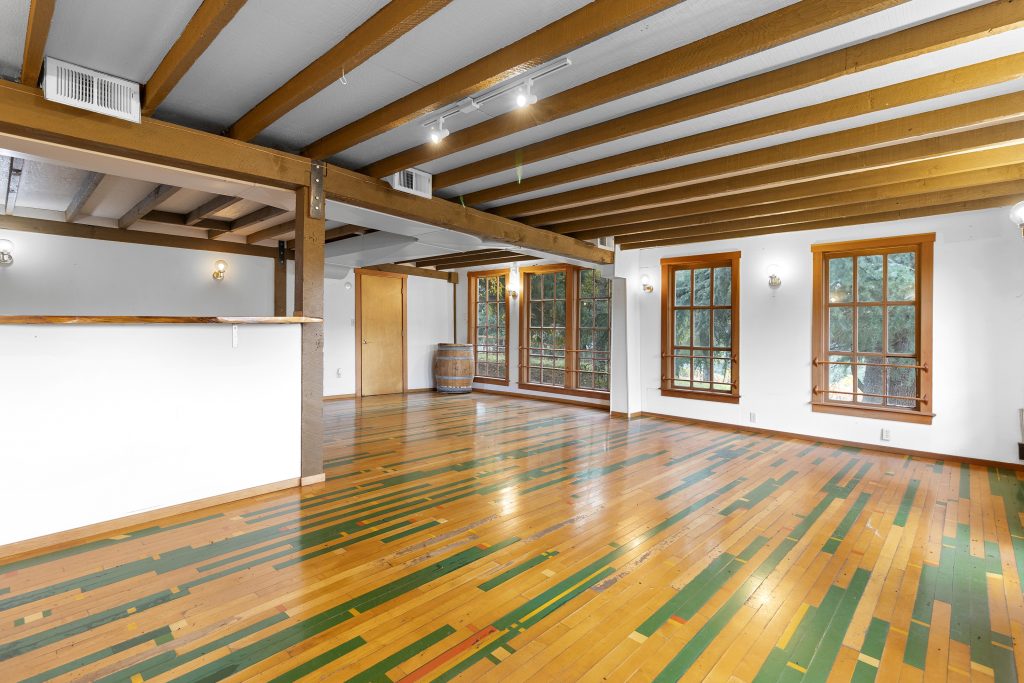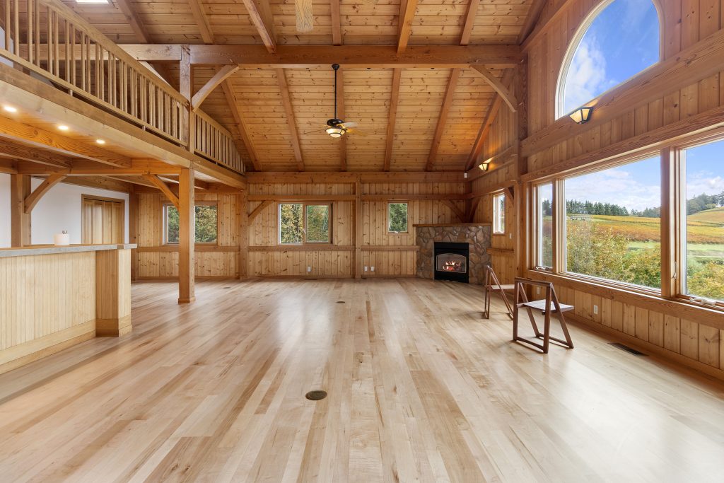 The 2,210 sq. ft. tasting room is the original barn coverted for hospitality. It is a charming old barn with board and baton siding and composition roofing. The interior flooring was reclaimed from the former Tigard High School gymnasium. The building features an open room with space for seated tastings plus a bar area, 2 public restrooms. A back-of-house space for wine storage and food prep is accessible from the interior, a garage door and exterior man door. The attic of the barn is unfinished but features high lofted ceilings and was formally approved by the county to be developed into an apartment.