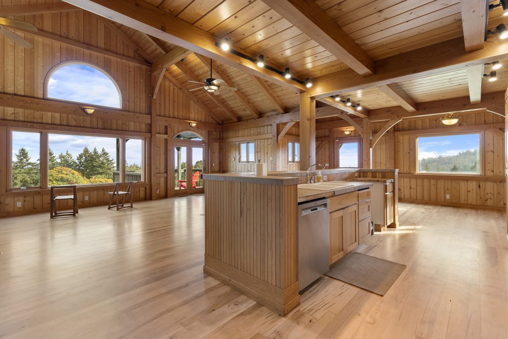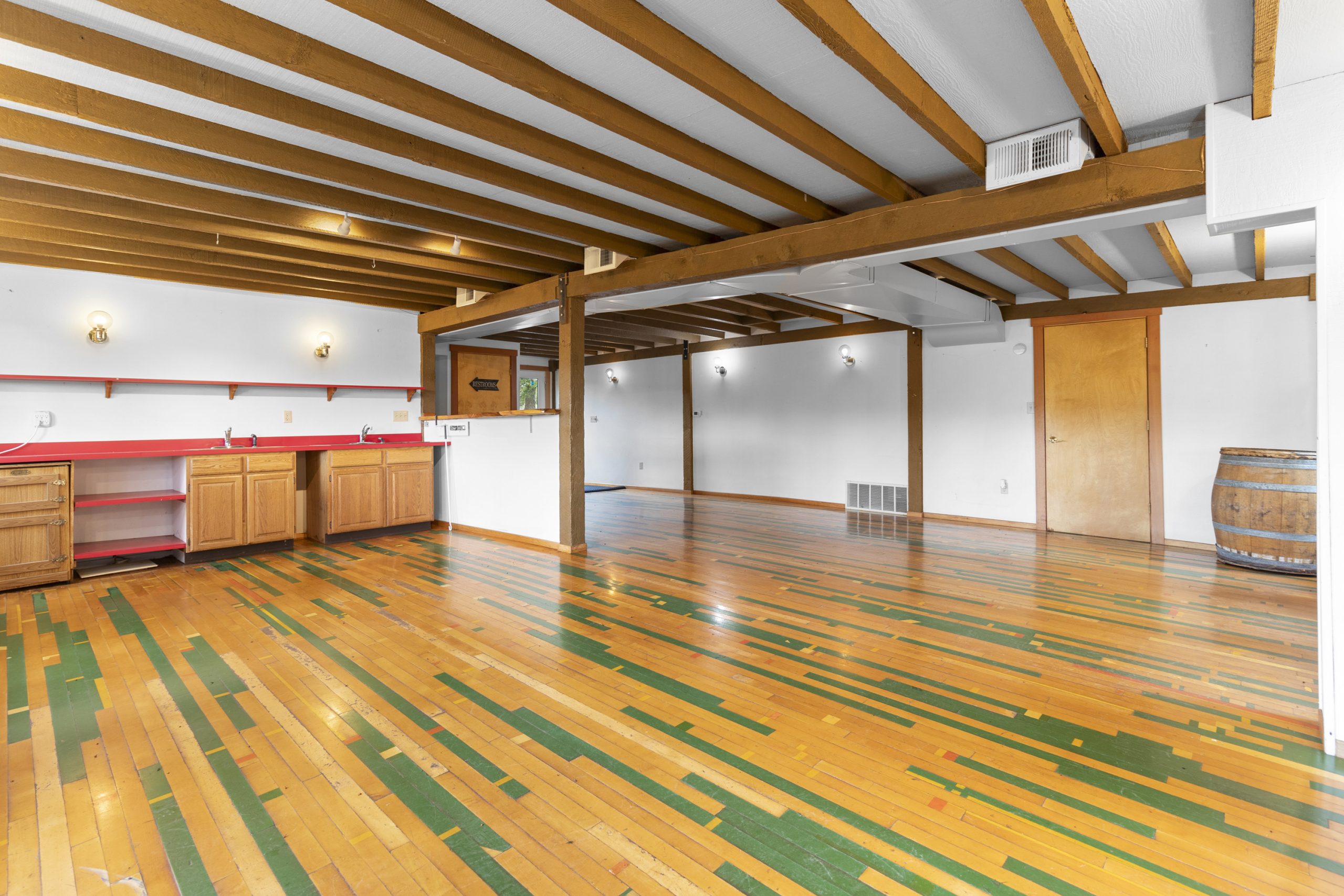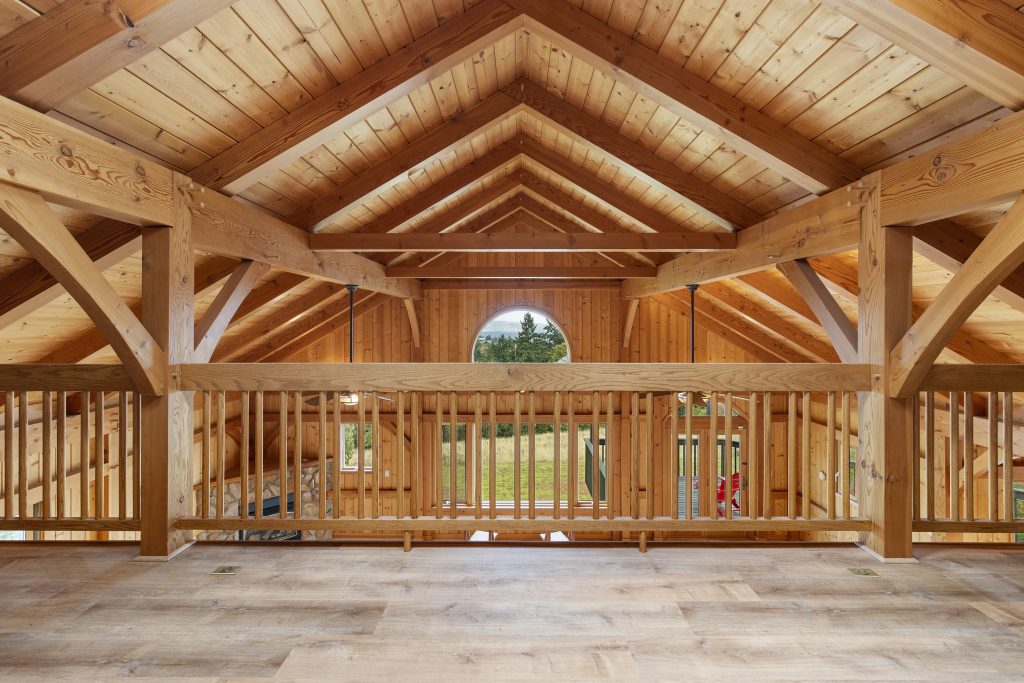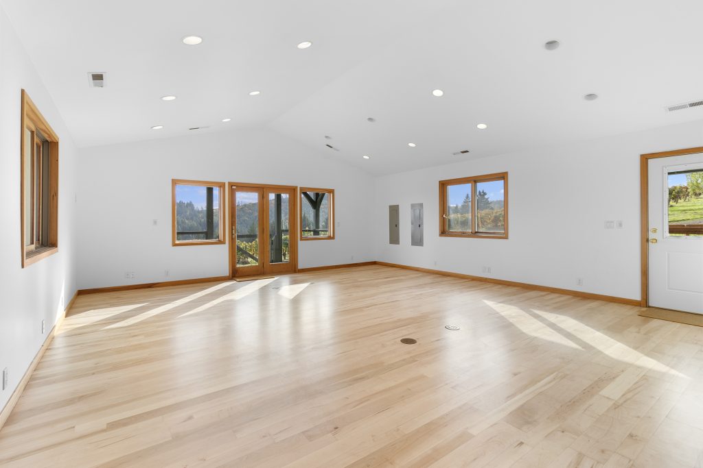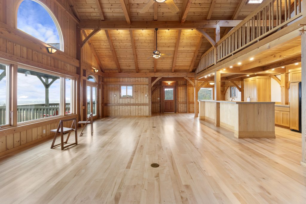 The 2,210 sq. ft. tasting room is the original barn coverted for hospitality. It is a charming old barn with board and baton siding and composition roofing. The interior flooring was reclaimed from the former Tigard High School gymnasium. The building features an open room with space for seated tastings plus a bar area, 2 public restrooms. A back-of-house space for wine storage and food prep is accessible from the interior, a garage door and exterior man door. The attic of the barn is unfinished but features high lofted ceilings and was formally approved by the county to be developed into an apartment.