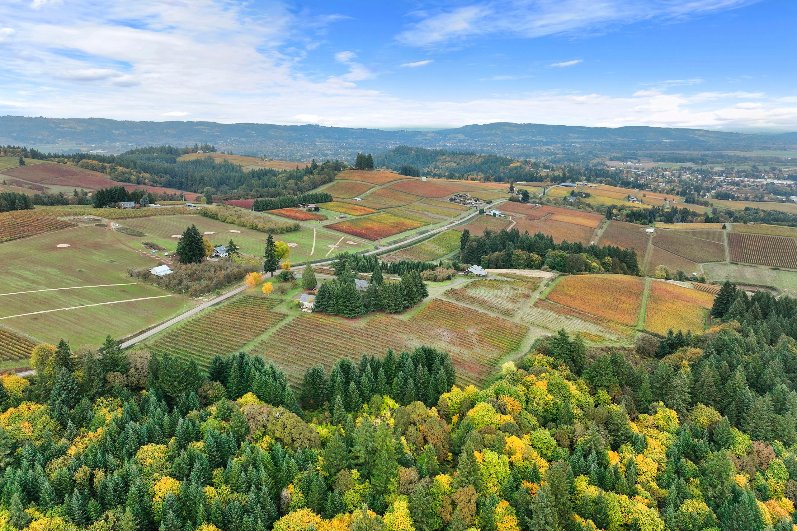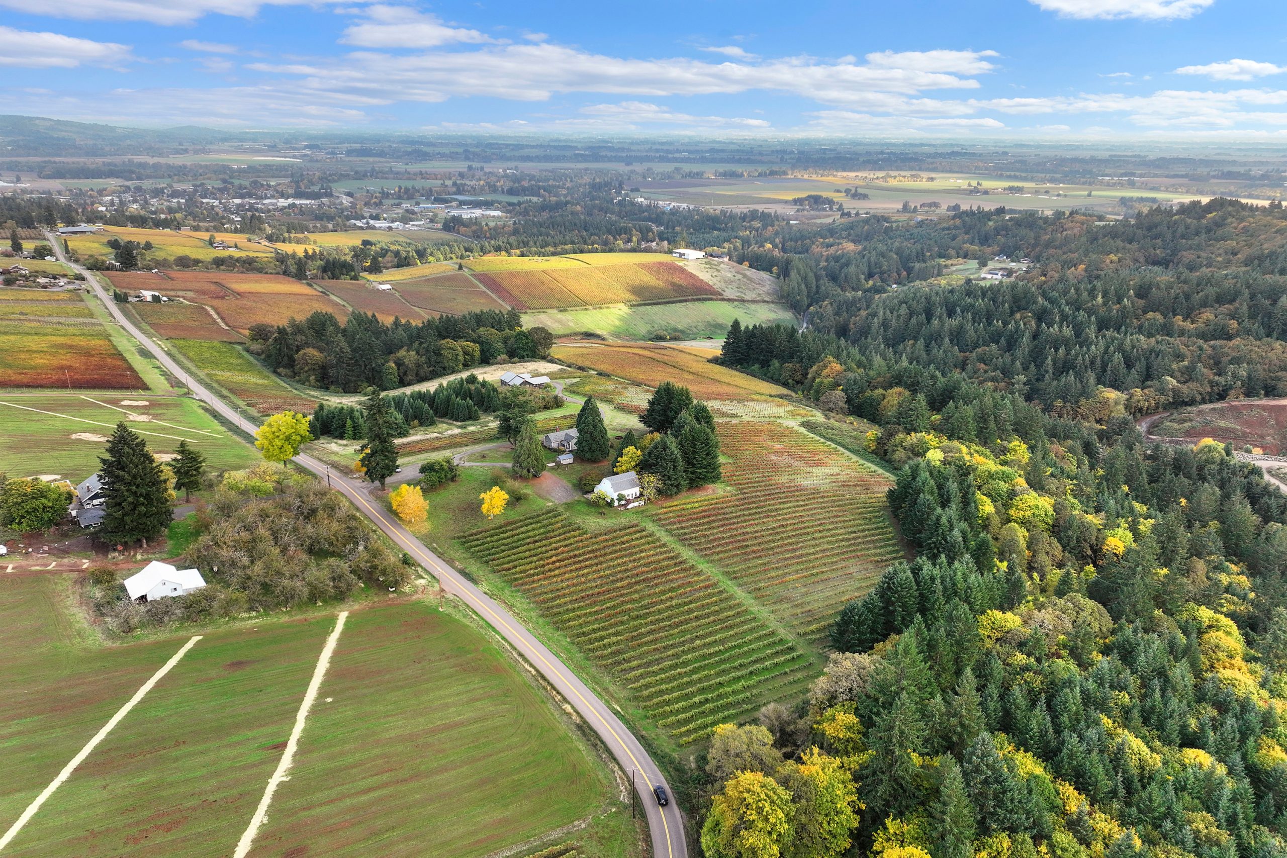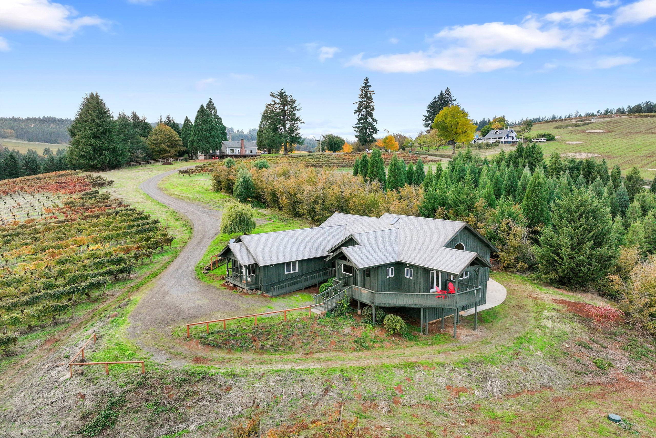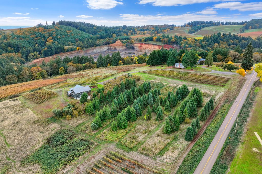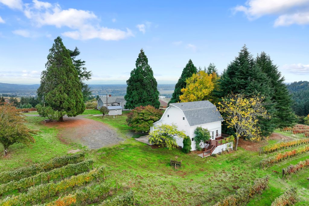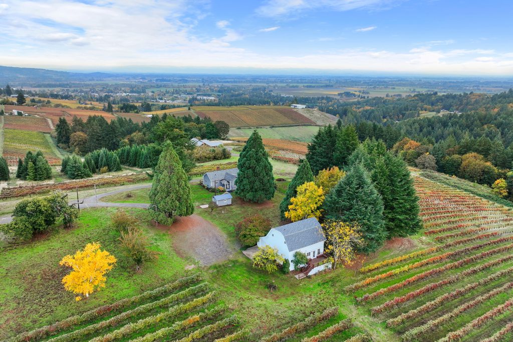 Oregon Vineyard Property is pleased to present this historically significant vineyard property with one of the best locations in wine country. Developed by Oregon Wine Industry pioneers Jim and Lois Maresh, the site was originally planted in 1970 when, after years of trying, Dick Erath convinced Jim to remove some of his cherry orchard and plant Pinot Noir and Riesling wine grapes. The property features the oldest vineyard block on Worden Hill Rd. and the second oldest in Dundee following the Eyrie Vineyard’s South Block and the fifth-oldest vineyard in Oregon. The vineyard is famous for producing ultra-premium Pinot Noir with dozens of vineyard designate bottlings scoring 94+. The site is one tax parcel totaling 41.43 total acres with 11+ planted to vineyard. Structures on site include a large retreat center, the original farmhouse and a historic barn finished for use as a tasting room. Both the retreat and farm house offer magnificent views of the Dundee Hills and Willamette Valley with Mt. Hood and Mt. Jefferson beyond. The historic barn / tasting room sits amongst the vines and is both welcoming and charming. The property also features 16+ acres of forested land reminiscent of a state park. A year round natural spring feeds into a concrete storage cube, water rights associated with the spring have a priority date of June 6th 1965. There is another year round spring below the retreat that fills a small pond. The pond offers potential to pursue a surface water right and develop a reservoir for irrigation. Rarely does a property with this strong of direct-to-consumer wine sales potential come to market. This is an opportunity to launch or expand your wine business in the epicenter of the Oregon wine industry, on one of the hills where it all started.