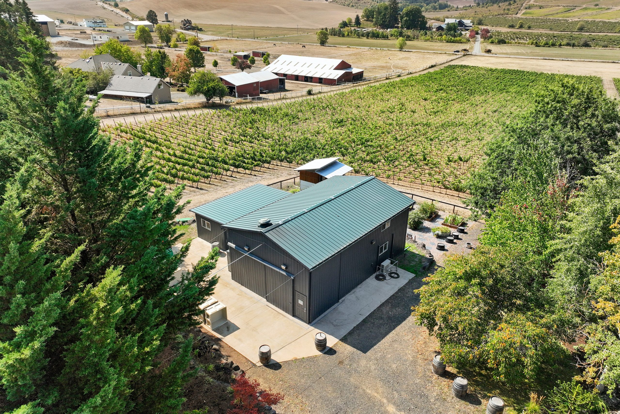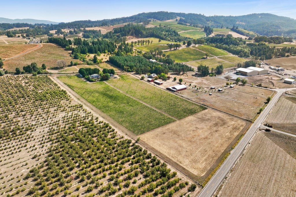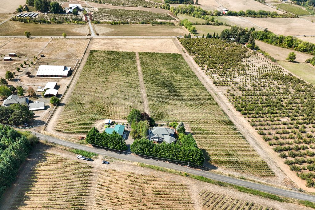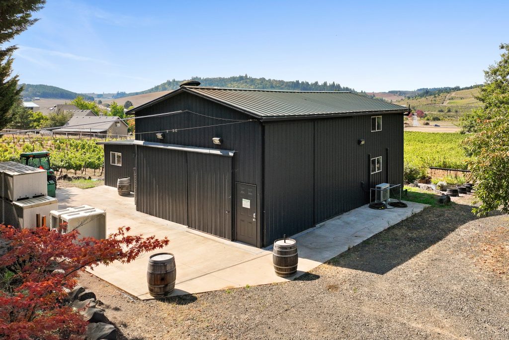 The winery building is approximately ’24x’40 with a production capacity of 900-1000 cases depending on the mix between red and white wine and tanks and barrels used. It is well maintained and features a storage loft, bathroom and lab counter with sink. There is a guest suite attached to the winery building with 1 bedroom, a full bath + living area. The guest suite offers flexibility to be used for tastings and/or as an office. The winery is first in line to receive back up power from the generator in the event of an outage. Current ownership has outright winery entitlement with 15 acres gross planted being approved by the county. This offers the next owner the potential to develop a much larger production facility and tasting room along Kuenhe Rd. which connects the majority of wine country visitors from the Portland metro area to nearby wineries, Ribbon Ridge, Carlton and beyond.