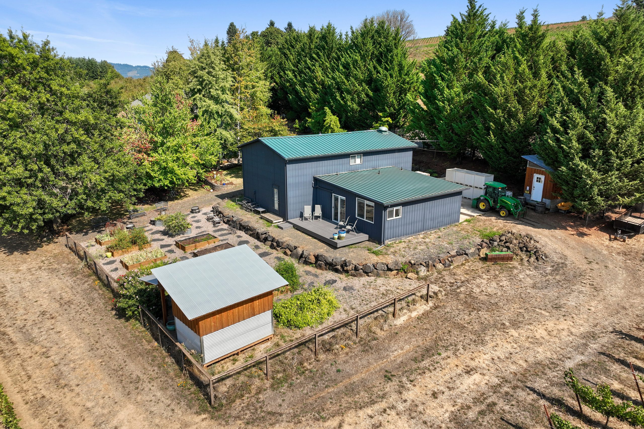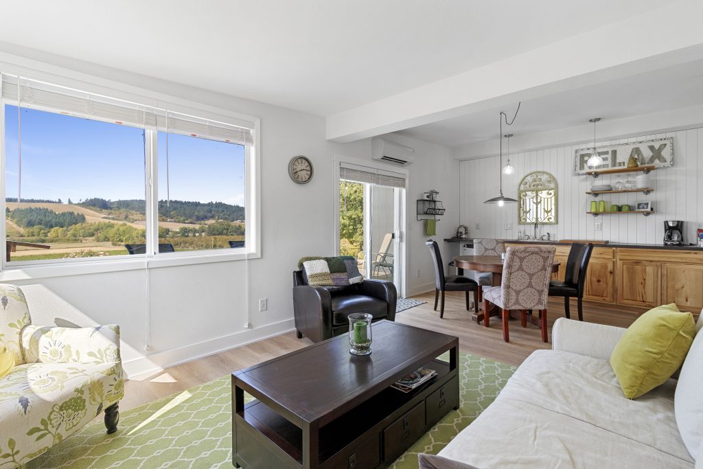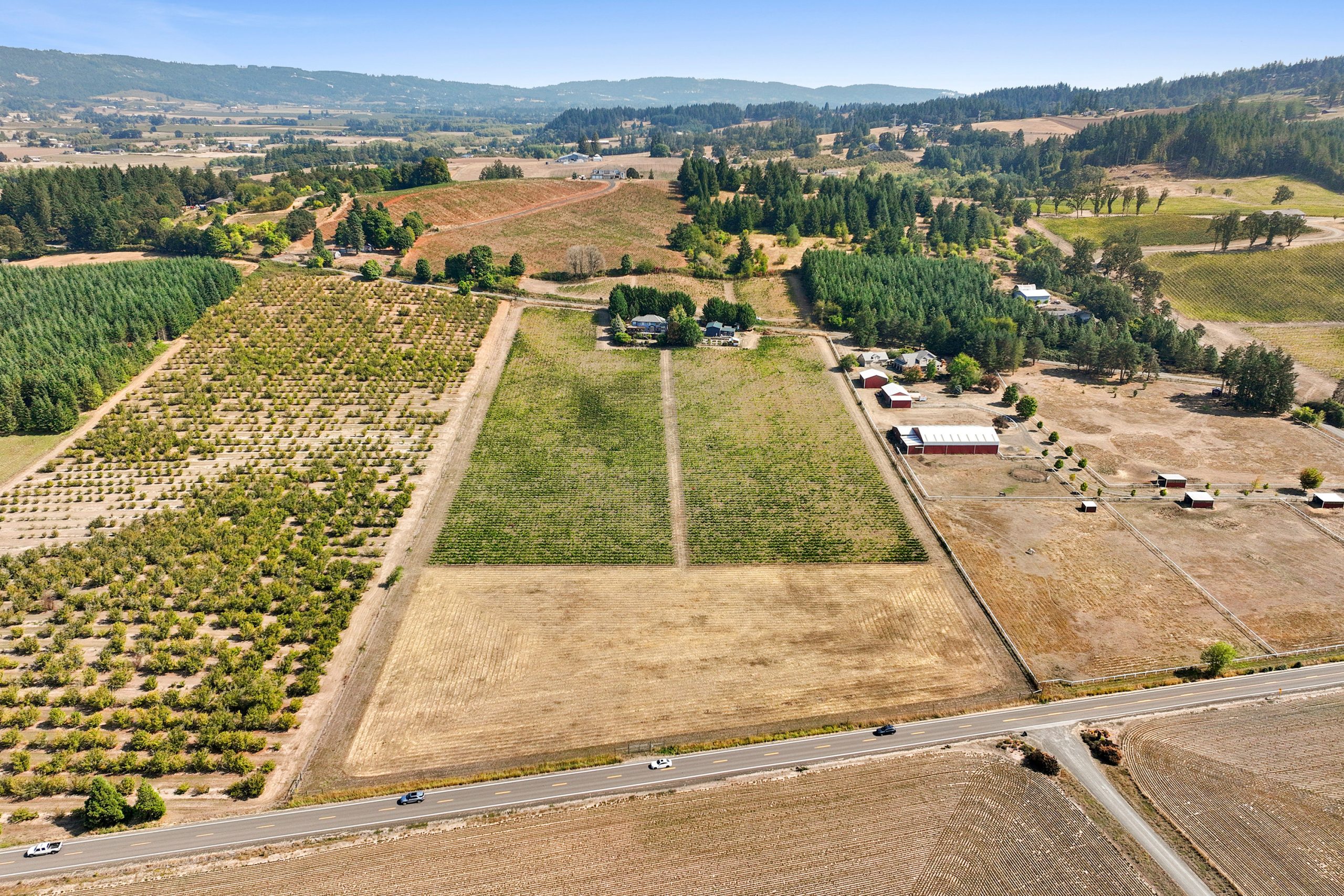 The winery building is approximately ’24x’40 with a production capacity of 900-1000 cases depending on the mix between red and white wine and tanks and barrels used. It is well maintained and features a storage loft, bathroom and lab counter with sink. There is a guest suite attached to the winery building with 1 bedroom, a full bath + living area. The guest suite offers flexibility to be used for tastings and/or as an office. The winery is first in line to receive back up power from the generator in the event of an outage. Current ownership has outright winery entitlement with 15 acres gross planted being approved by the county. This offers the next owner the potential to develop a much larger production facility and tasting room along Kuenhe Rd. which connects the majority of wine country visitors from the Portland metro area to nearby wineries, Ribbon Ridge, Carlton and beyond.