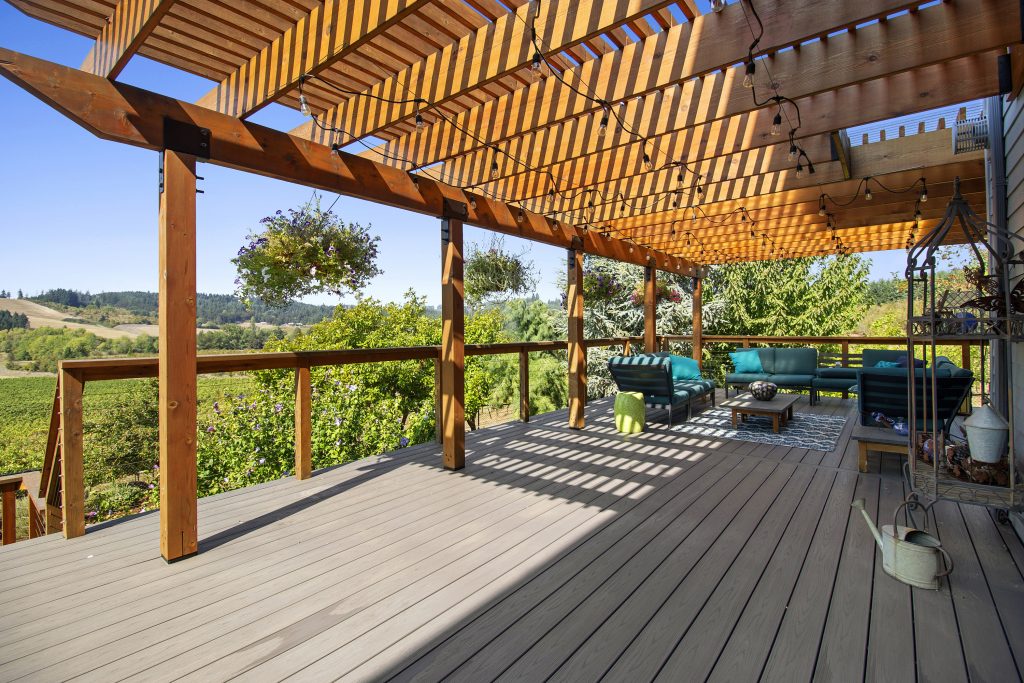 Azec deck (1100 square feet) and cedar pergolas.