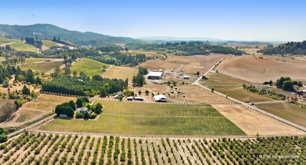 Oregon Vineyard Property is please to present this turn key custom home, vineyard and boutique winery in Oregon’s most prestigious AVA, the Dundee Hills. The property totals 19 acres with 15 gross acres planted to vineyard featuring Pinot Noir and Chardonnay. The existing winery is fully entitled and not encumbered by a conditional use permit. The custom home has been updated throughout with modern amenities and chic styling + upgrades to the major systems. Located in the epicenter of Oregon’s most dynamic wine region, this property is well suited for those seeking a boutique winery but also can be scaled into a larger operation with nearly 4 acres of level open ground along Kuenhe Rd. where a new production facility and tasting room could be built.